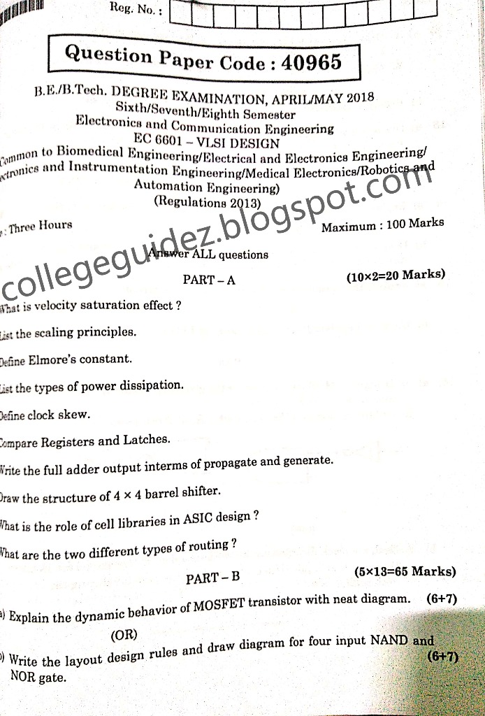 EC 6601 VLSI Design r2013 Anna University Question Paper Apr/May 2018