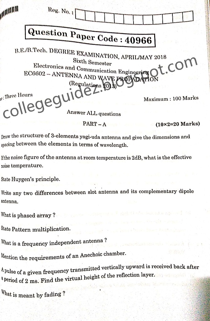 EC 6602 Antenna and Wave Propagation r2013 Anna University Question Paper Apr/May 2018