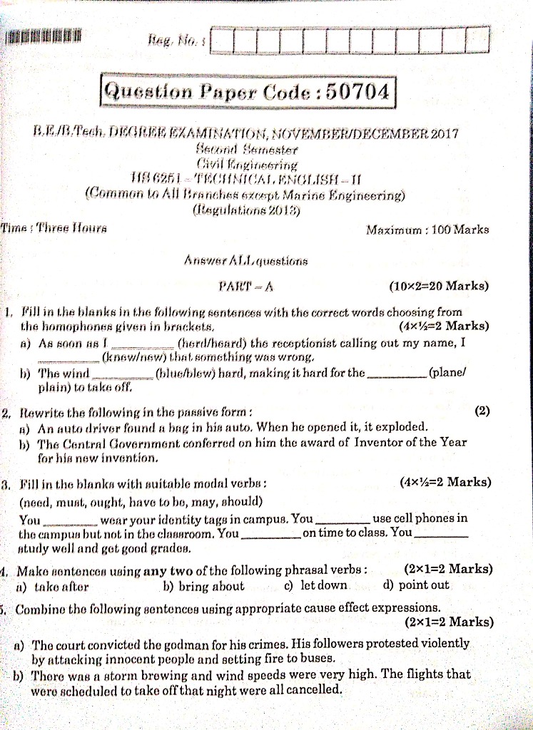 HS 6251 Technical English-II r2013 Anna University Question Paper-Nov/Dec 2017