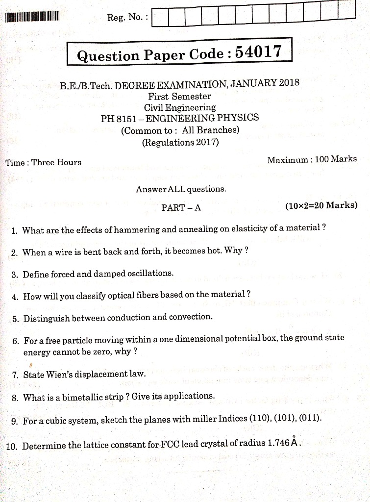 PH 8151 Engineering Physics r2017 Anna University Question Paper-Jan 2018