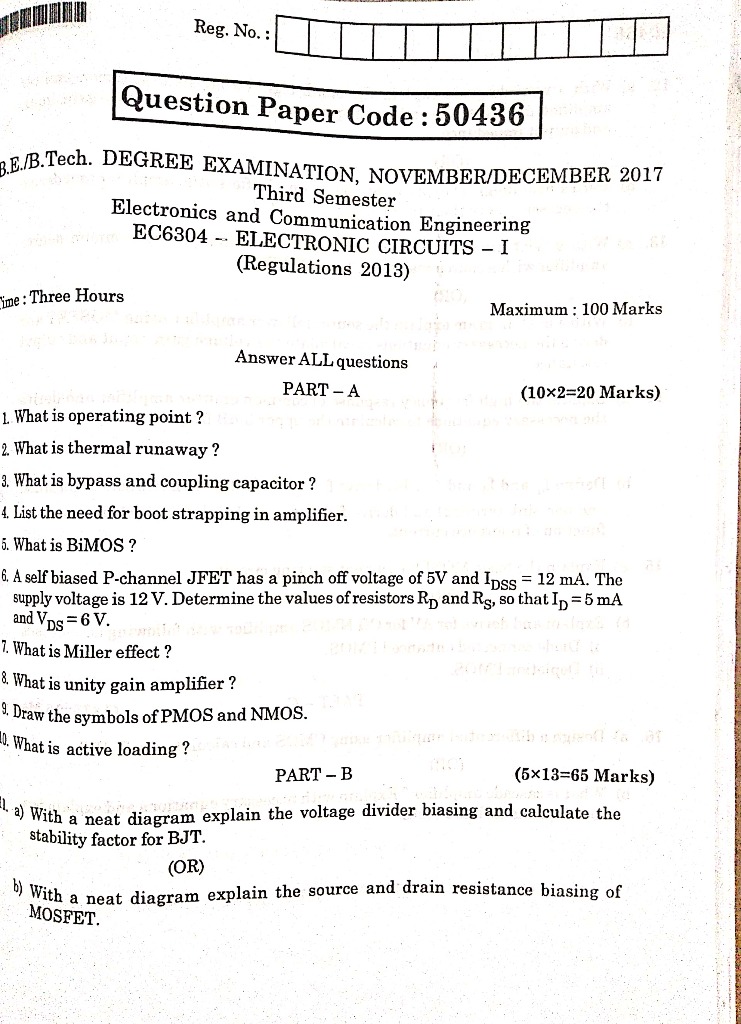 EC 6304 Electronic Circuits-I r2013 Anna University Question paper-Nov/Dec 2017