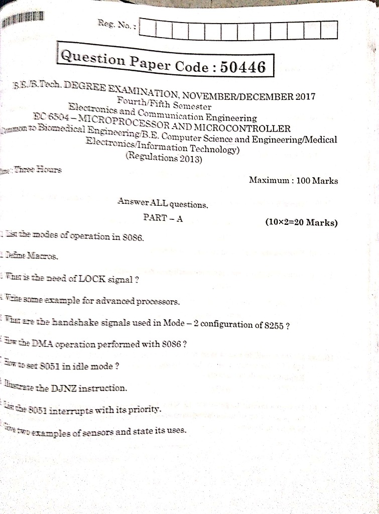 EC 6504 Micro Processor and Micro Controller r2013 Anna University Question Paper-Nov/Dec 2017