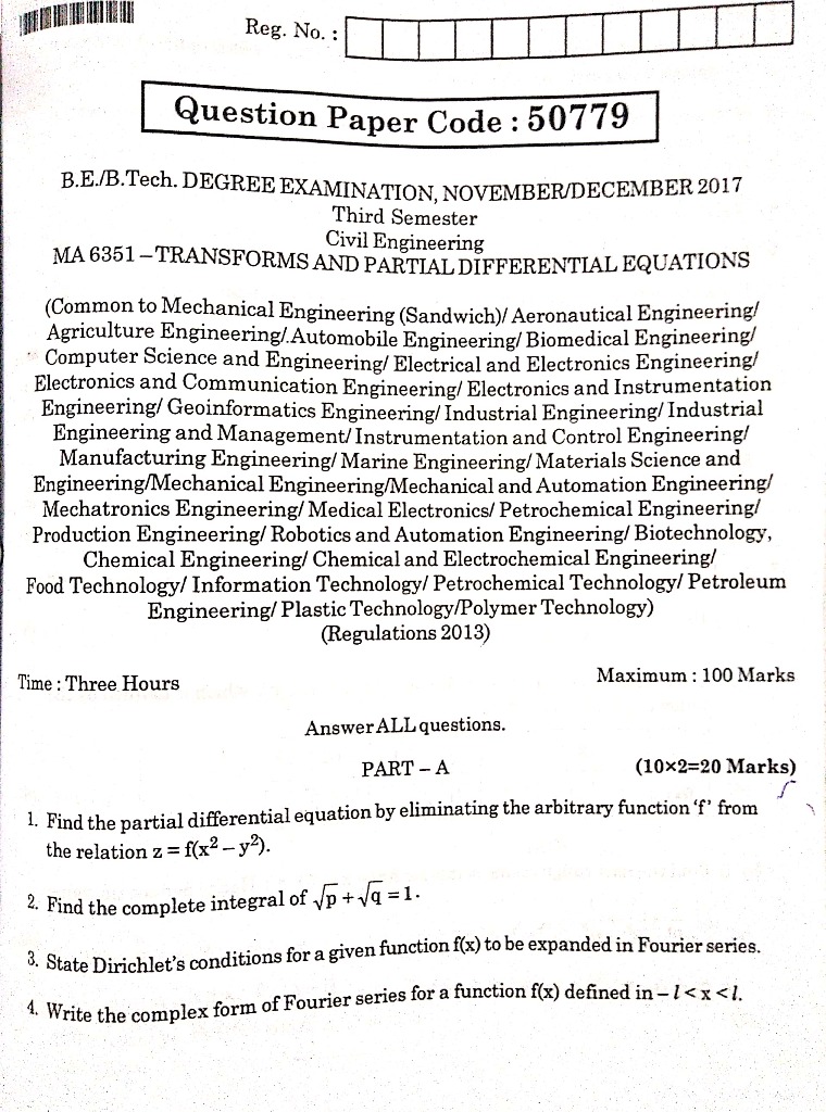 MA 6351 Transforms and Partial Differential Equations r2013 Anna University Question Paper-Nov/Dec 2017